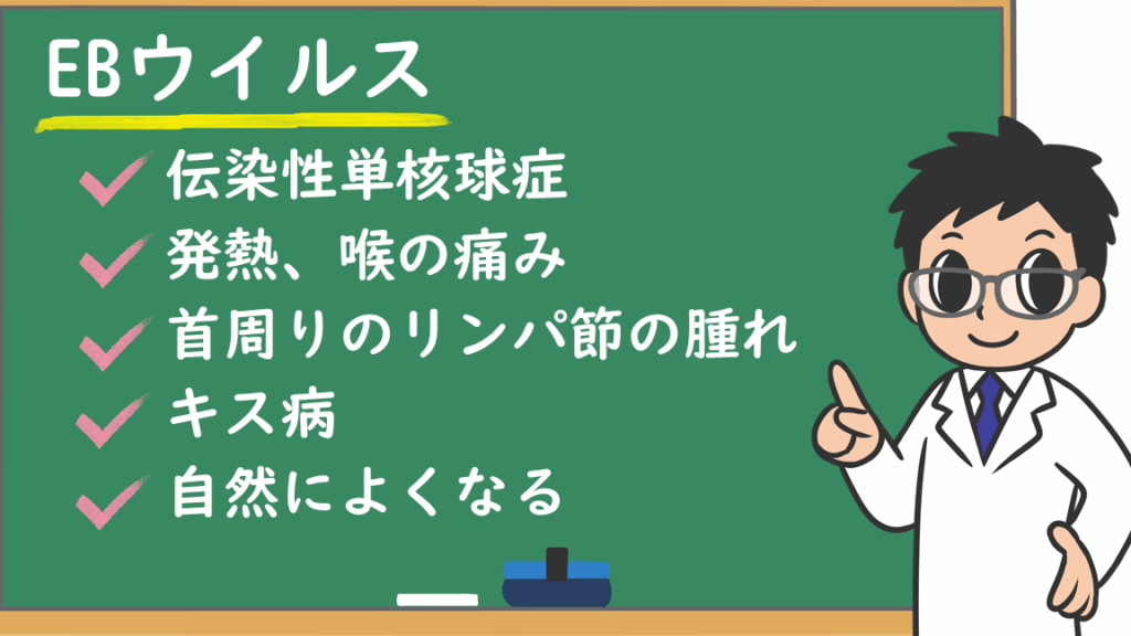 ebウイルスは、エプスタイン・バーウイルスとも呼ばれ、主に人間のBリンパ球に感染するウイルスです。既感染者の約90%がこのウイルスに対する抗体を持ち、潜伏感染状態にあることが多いです。このウイルスは、主に成人や青少年の伝染性単核球症を引き起こすことで知られています。