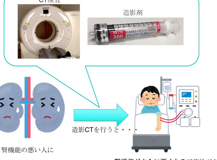 造影剤は、画像診断を助けるために使用されますが、腎機能に影響を及ぼすことがあります。具体的な影響は以下の通りです。