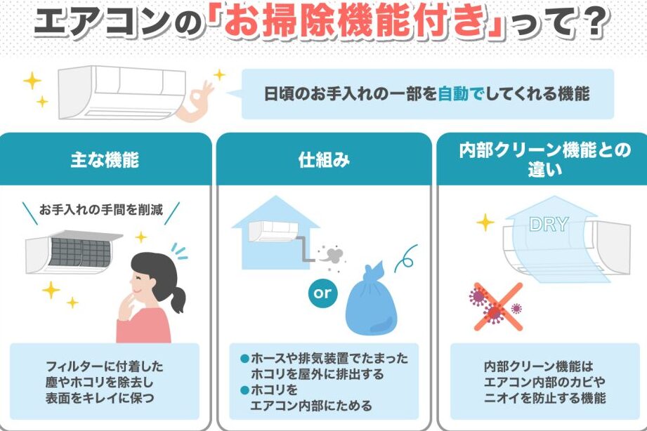 エアコンを選ぶ際、重要な要素としてお掃除機能が挙げられます。この機能の有無で使い勝手やメンテナンスの手間が大きく変わります。