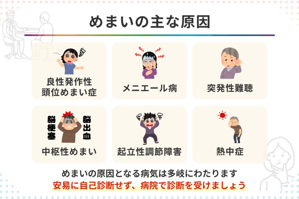 - 中枢性平衡障害:脳の問題が原因でバランスが保てなくなる。