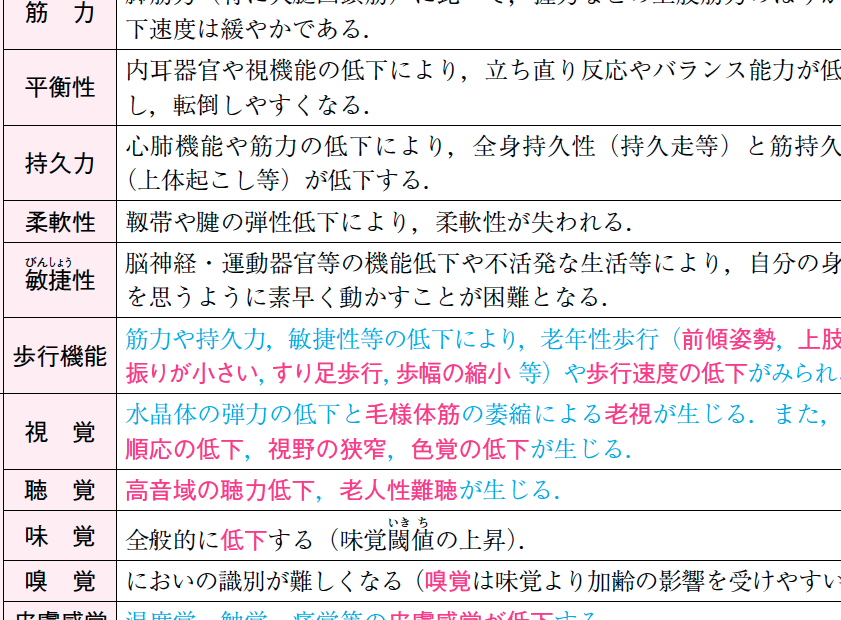 老年期における身体機能の変化は避けられない現象ですが理解し対策を講じることで生活の質を向上させることができます。筋力や柔軟性の低下を防ぐための運動や栄養管理は非常に重要です。また認知機能の維持には脳トレーニングや社交的な活動が効果的です。身体機能の変化に対する知識を深めることで私たちはより健康的で充実した老後を送ることができるでしょう。これからもこれらのポイントを意識しながら日々の生活を楽しんでいきたいと思います。