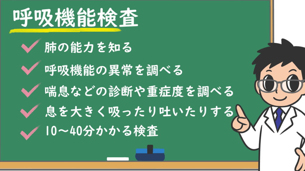 スパイロメトリーは、患者の息を吸ったり吐いたりする力を測定する検査です。この検査では、以下の項目が評価されます。
