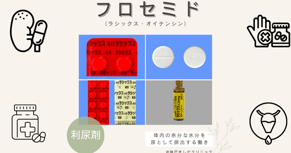 - ループ利尿剤: フロセミドなどが含まれ、尿中にナトリウムを排出させることで水分を減少させる。