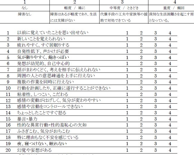 医療機関での評価は、障害等級を決定するための重要なプロセスです。主に神経心理学的テストや医療的調査が行われます。以下の項目が一般的な評価基準です: