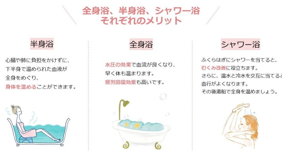 全身浴と半身浴には、循環機能への影響が大きく異なる。具体的には、全身浴は体全体を温めるため、心臓への負担が増加することがある。一方で、半身浴は下半身だけを浸けるため、心臓への負担が軽減される。この方法は、血液循環を改善しやすく、体への影響も少ない。