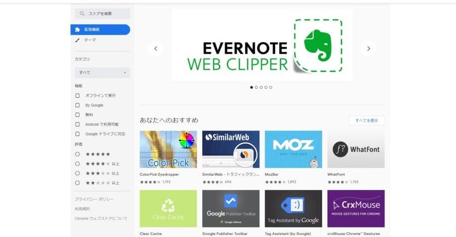Chromeウェブストアでは、これらの拡張機能を容易に検索できます。