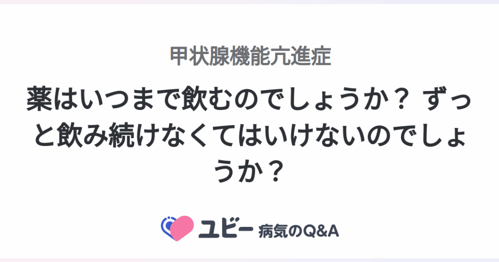 - 完全な甲状腺機能の回復が必要な場合:通常、1年以上の服用が期待されます。