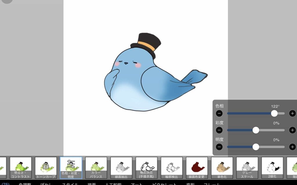 - 効果の調整: スライダーを使って効果の強さを調整します。