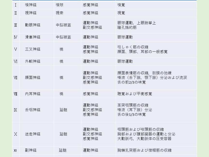 脳神経は、体のさまざまな機能に不可欠な役割を果たしています。それぞれの神経が特定の機能を持ち、身体の感覚や運動を管理しています。以下に、脳神経の主な機能について詳しく説明します。
