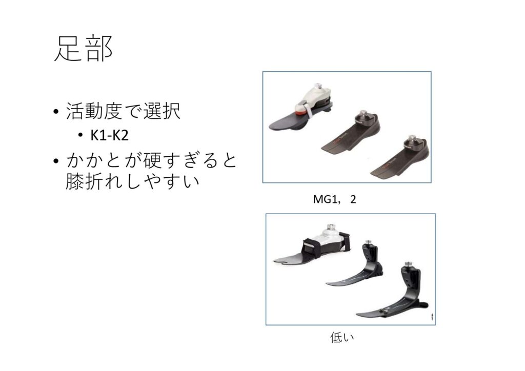 - 軽さ:義足の足部は軽量で、長時間の使用が可能です。