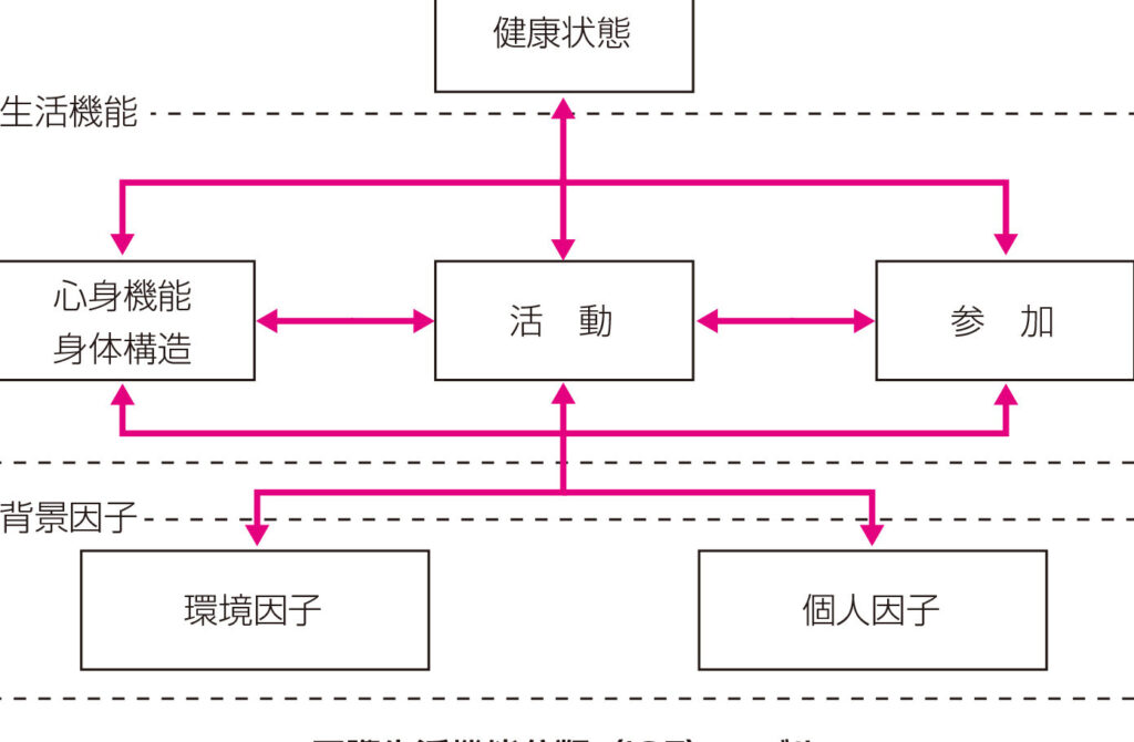 - 機能と障害:個人の身体機能や心理的側面を評価し、それに基づく支援を考えます。