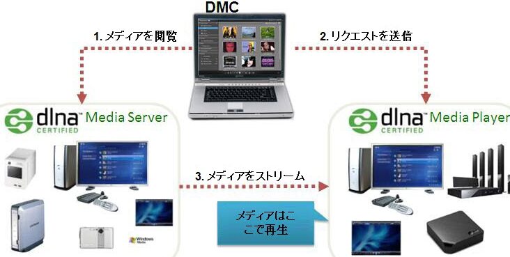 - メディアレンダラー: 再生するためのデバイスで、視聴者として機能。