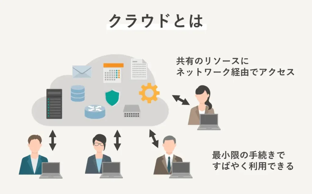 クラウドとは、インターネットを介してデータやアプリケーションを利用する仕組みです。つまり、物理的なストレージデバイスがなくても、データがオンラインでアクセス可能になります。そのため、私たちのデバイスや場所に依存しません。特に、地理的な制約がないため、世界中どこからでもデータにアクセスできる利点があります。