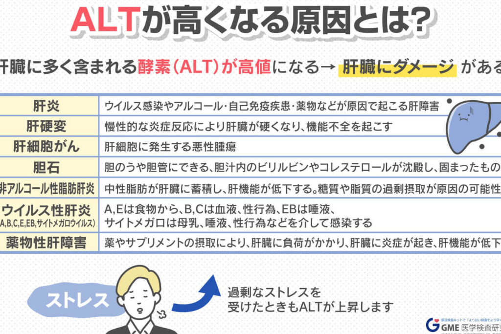 - 肝酵素レベル: ALTとASTが正常値を超えていると、肝細胞の損傷が示唆されます。