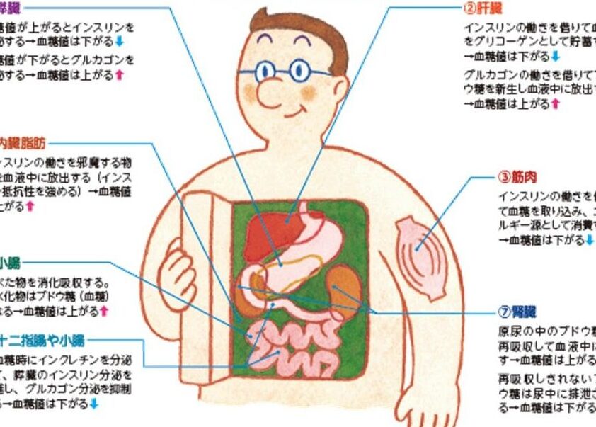 インスリンは膵臓から分泌され、血中のグルコースを細胞に取り込む働きをします。私たちが食事から得た糖分は、身体のエネルギー源です。食事後、血糖値が上昇すると、インスリンが分泌され、グルコースを細胞に供給します。この過程が正常に行われないと、血糖値が異常に高くなることがあります。