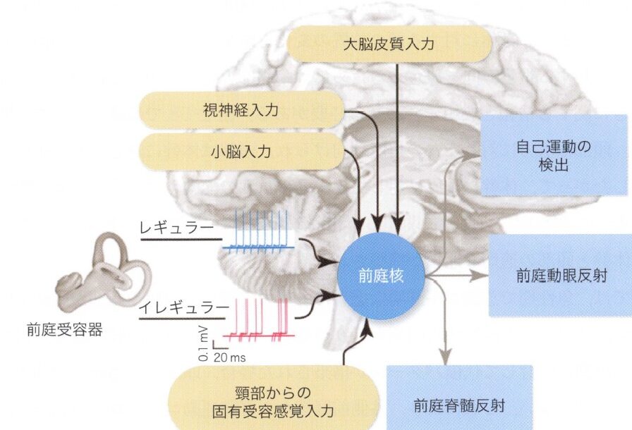- 感覚情報の統合: 視覚や前庭感覚から得た情報を統合し、バランスの調整を行う。