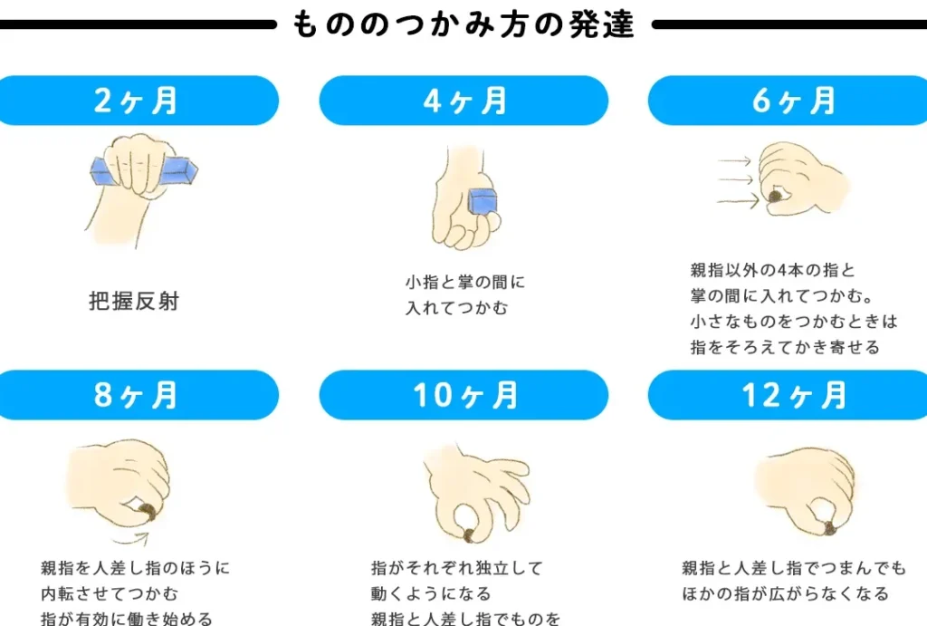 - 細かい運動: 手や指の動きを使う技能で、物をつかむことや描くことに関連しています。これらは3歳から6歳までに著しく成長します。