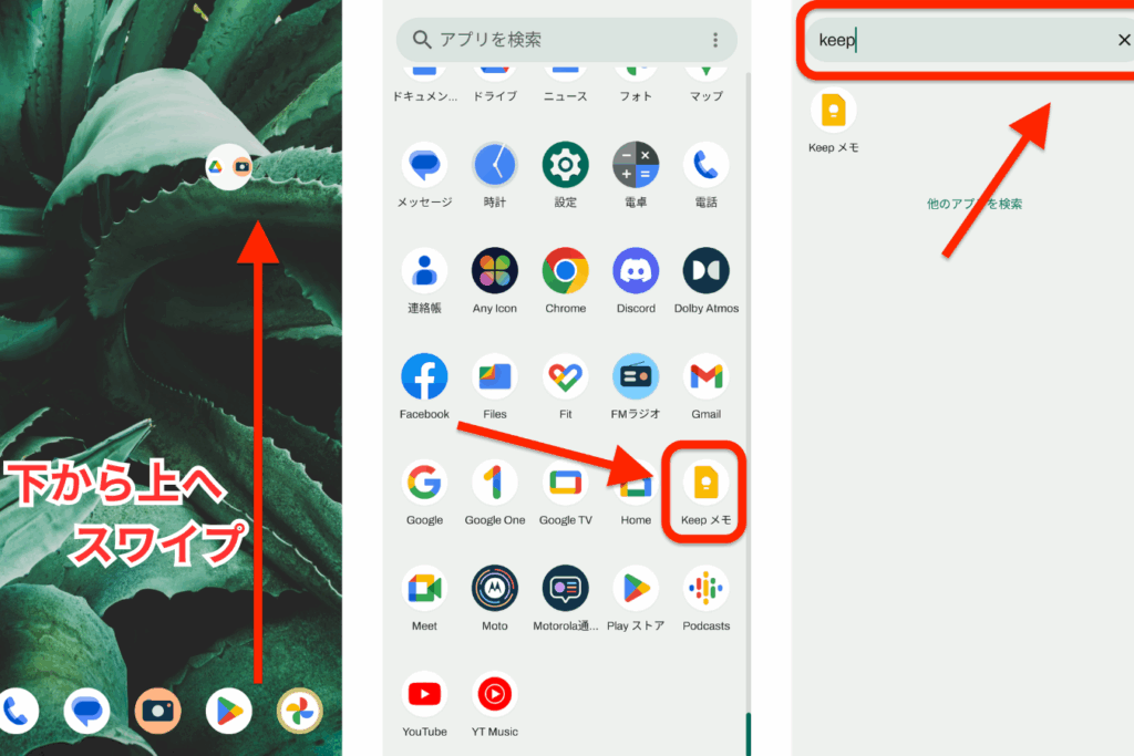 直接アプリからもメモ機能へアクセスする方法があります。以下の手順を参考にしてください。