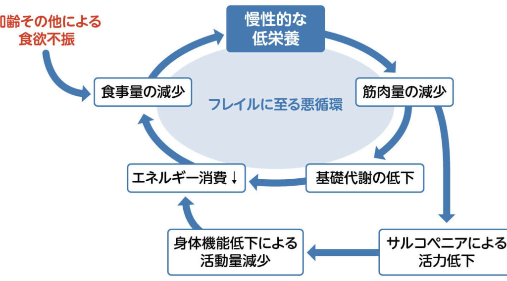 低栄養状態では、体の重要な機能を支える栄養素が不足します。この不足が腎臓の血流減少や機能障害を招くことがあります。たとえば、たんぱく質の不足が筋肉量を減少させ、それが腎機能にさらなる負担を与えます。加えて、免疫機能の低下が、腎臓周辺の感染リスクを高める要因にもなります。こうしたメカニズムにより、低栄養と腎機能低下の相互作用は、悪循環を形成します。