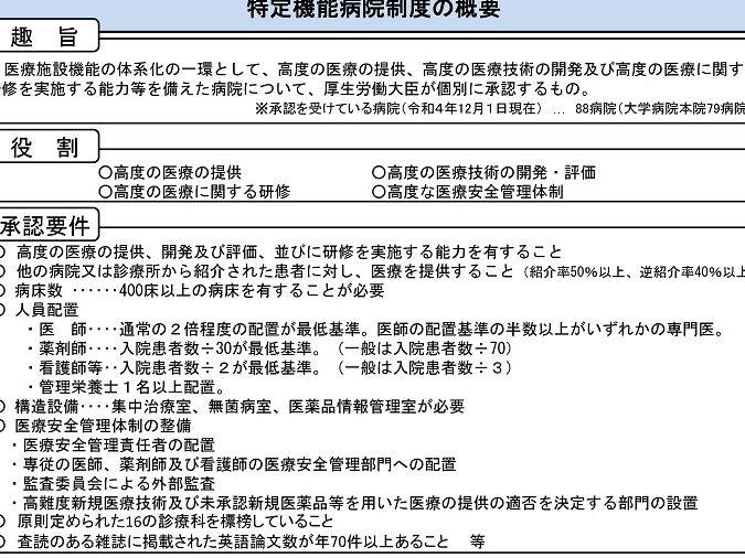 - 医療リソースの集中: 特定機能病院に高度な医療リソースが集まるため、地域の一般病院の機能が低下することがある。