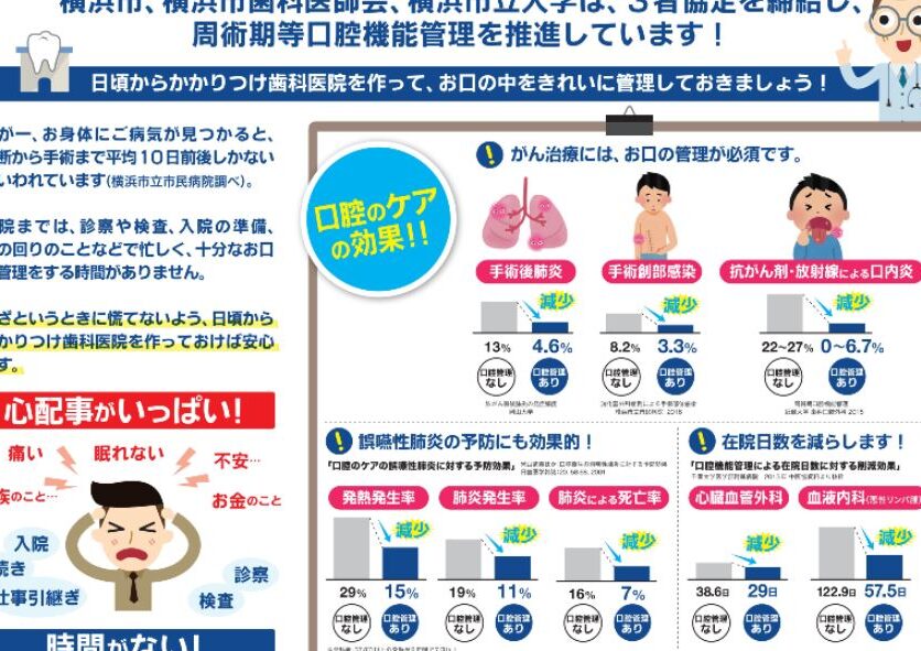周術期の口腔機能管理は、患者の全体的な健康に直接影響を与える。その結果、手術前後の回復において重要な役割を果たすことが期待される。