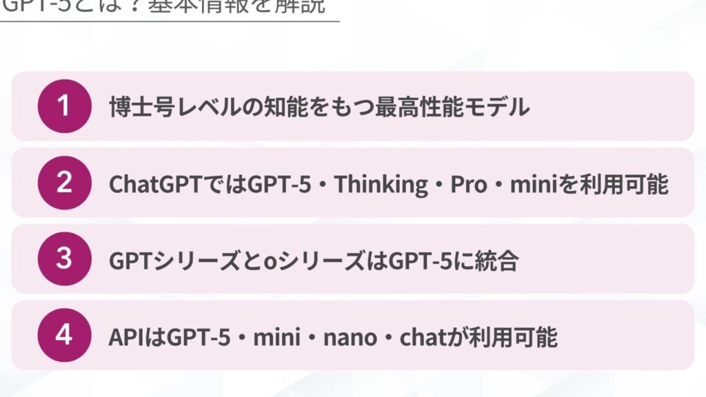 GPT-5はその機能の幅広さで際立っています。私たちはその新しい特徴をいくつか紹介します。