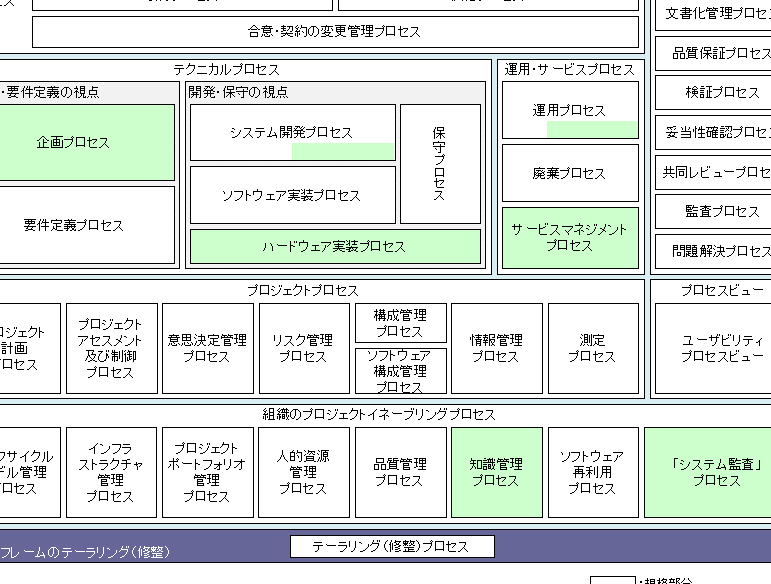 共通フレーム2007は、ソフトウェアの開発、運用、保守のためのガイドラインを提供します。以下の要素が含まれています: