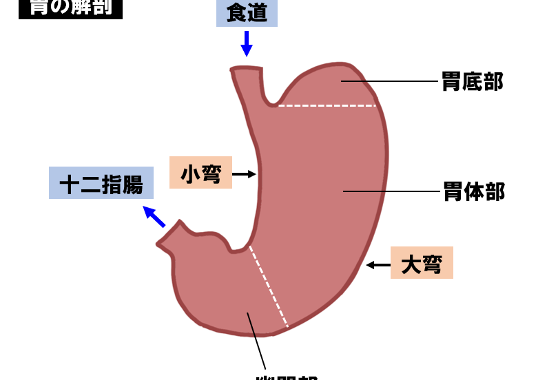 胃の主な部位は以下の通りです。