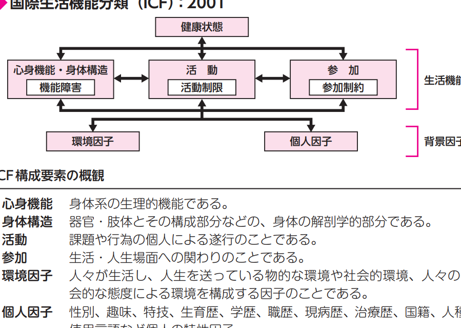 - 環境因子:外部のサポートやバリア