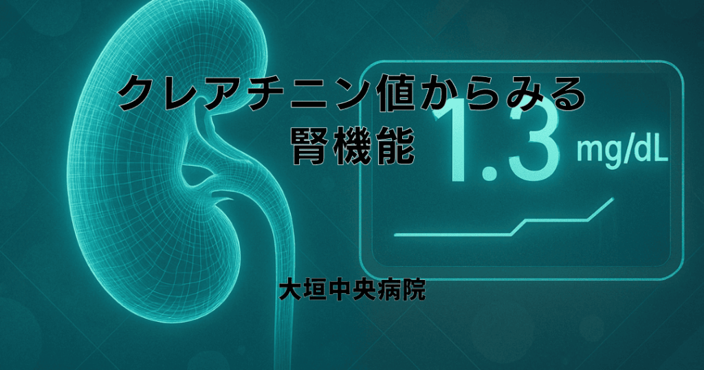 - クレアチニンの正常値(0.6~1.2 mg/dL)を確認。高値は腎機能の低下を示す。