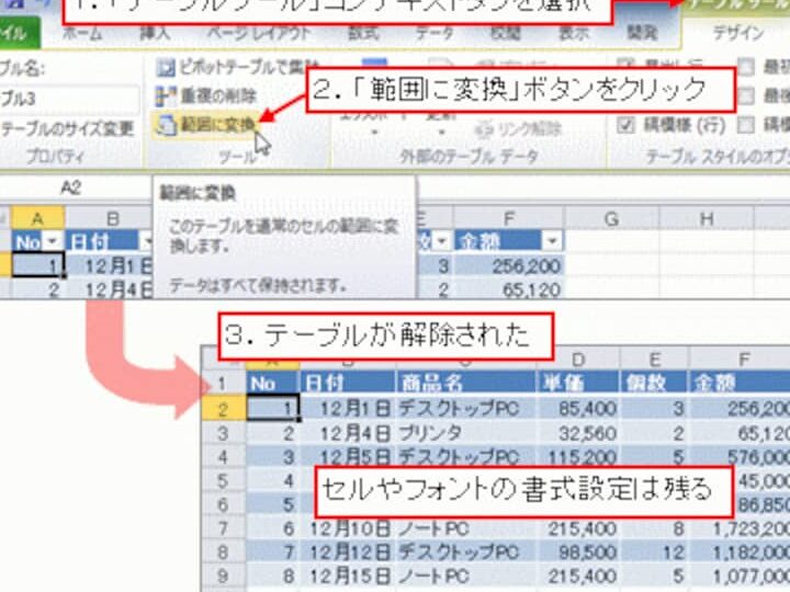 - データの自動整形: データ範囲を選択するだけで、Excelが自動的にテーブル形式に変換する。