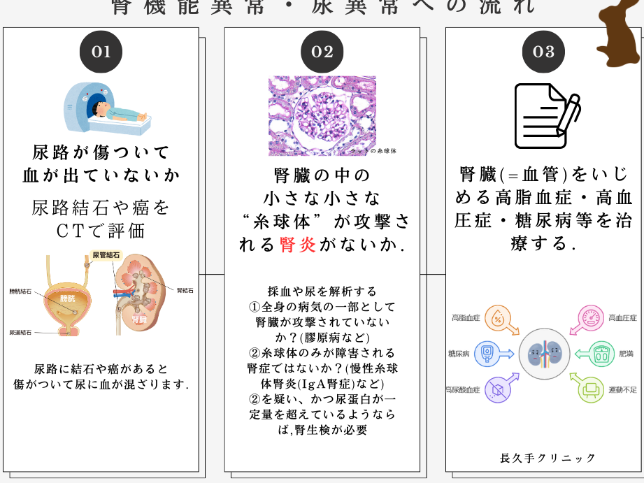 検査結果に基づいて腎機能を評価し、異常があればさらなる検査が必要です。