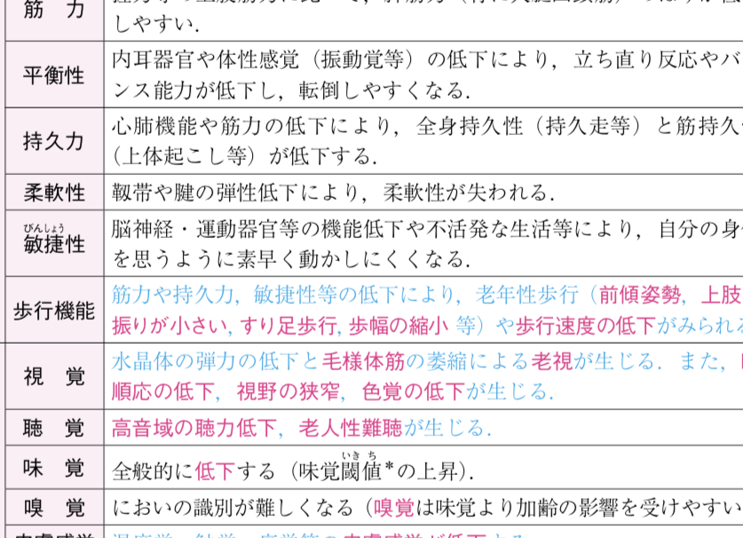 加齢に伴う身体的機能の変化には、比較的安定したものも多い。特に筋肉や骨の機能は重要であり、これらの維持が健康に寄与する。