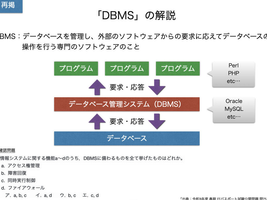 情報システムは、データの管理、処理、解析のために設計されたシステムです。特にDBMS(データベース管理システム)では、データの格納、取り出し、更新が円滑に行えることが求められます。