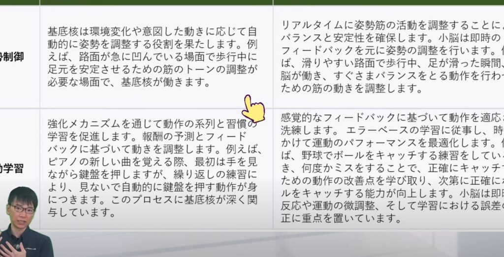 このように、小脳は特に運動を行う際の細かい動きに大きな影響を与えます。