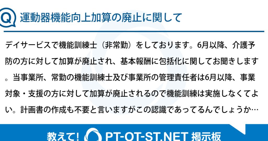 運動機能向上加算 廃止の背景
