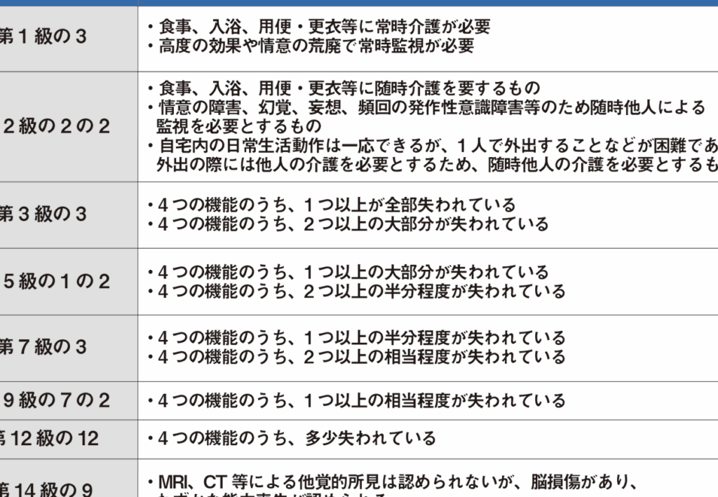 高次脳機能障害のレベル分けは、障害の程度を理解するために重要です。障害の分類には、1級から3級までの区分があります。これにより、個々の症状や必要な支援が明確になります。
