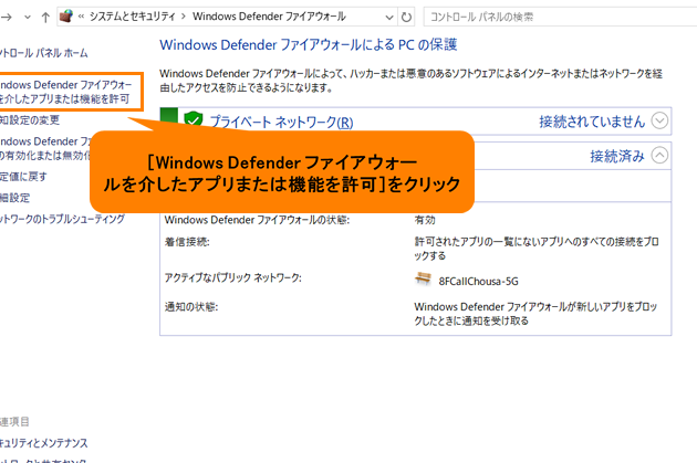 Windows Defenderファイアウォールの設定を確認し、必要な変更を行うことで問題を解決できる可能性があります。具体的な手順は以下の通りです。