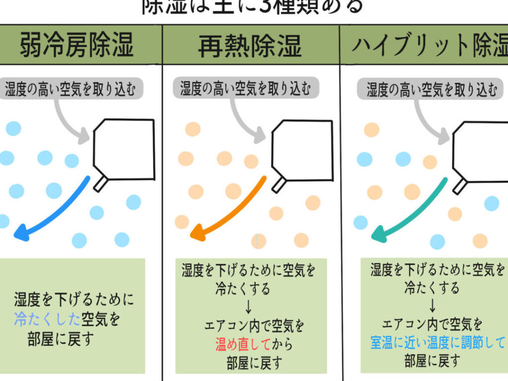 除湿方式には主に二つの方法があり、それぞれ異なる仕組みで湿度を下げることができる。以下に詳しく説明する。