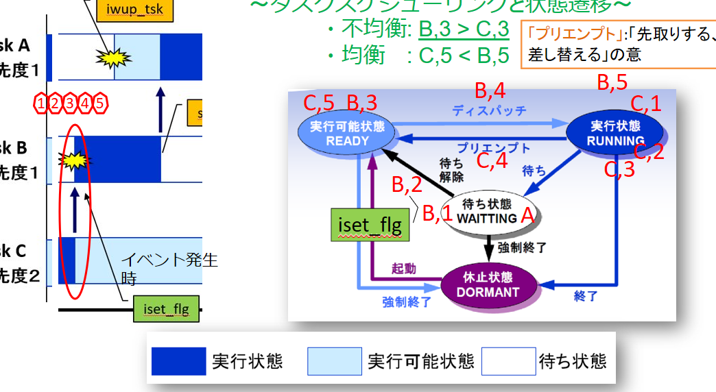 リアルタイムOSのタスクAの状態遷移条件とは